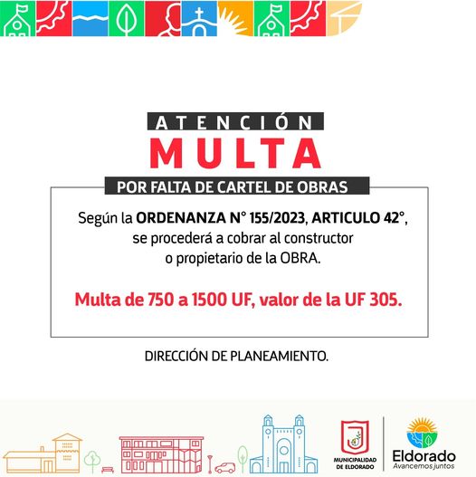 Según el ARTÍCULO 42°, «se procederá a cobrar al constructor o propietario de la OBRA una multa de 750 a 1500 UF, valor de la UF 305».