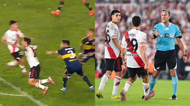 «No fue absolutamente nada», remarcó el exárbitro. “Con esa acción, al jugador de River no se le impide llegar al balón. Siente el contacto y se deja caer”.