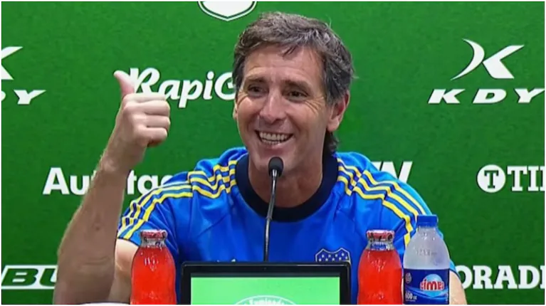La reacción de Úbeda cuando los jugadores de Boca interrumpieron la conferencia de prensa por los festejos