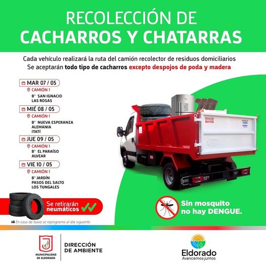 ✔️Los vecinos deberán disponer sus cacharros/chatarras en sus veredas previo a la recolección. (Los agentes municipales no retirarán de los domicilios los residuos).