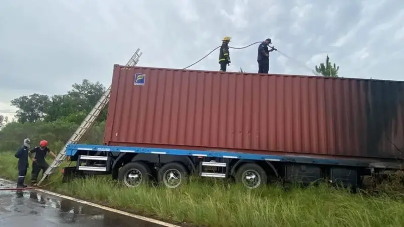 De acuerdo a la información preliminar, el Fiat Siena habría intentado sobrepasar a una fila de camiones que circulaban por la ruta cuando impactó de manera frontal contra el transporte de carga. A raíz del violento choque, el vehículo menor fue arrastrado varios metros luego del despiste del camión, hasta terminar contra un alambrado, donde posteriormente se incendió.