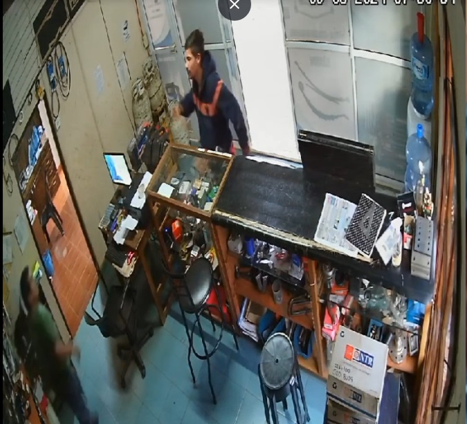 El incidente ocurrió alrededor de las 7,40 cuando “hacía 5 minutos que abrimos el negocio y mientras estábamos preparando el mate”, comentó el hombre que tiene su negocio en calle Sarmiento (misma arteria donde ocurrió el asalto al supermercado el pasado martes). Y agregó que el individuo “le preguntó a la empleada por una gomita para garrafa y cuando ella fue hacia atrás para preguntar, se tomó el trabajo de sacar la batería hacia afuera”.