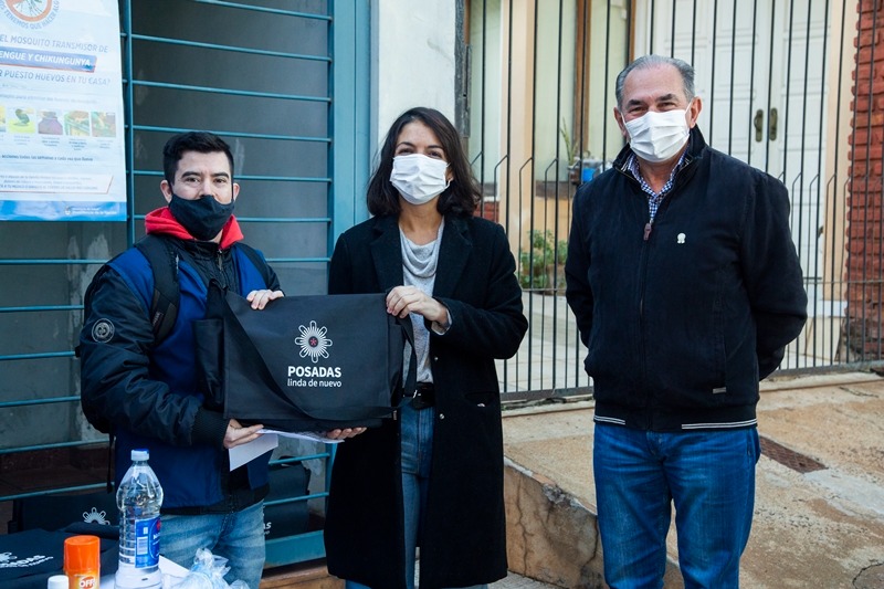 El intendente de Posadas Leonardo Stelatto junto a la secretaria de Salud, Medio Ambiente y Desarrollo Humano Lilian Tartaglino y el director de Control de Vectores y Vigilancia Epidemiológica Fabricio Tejerina entregaron los materiales de trabajo a los técnicos que llevarán adelante esta tarea. De la actividad también participó la Lic. María Eva Jiménez.