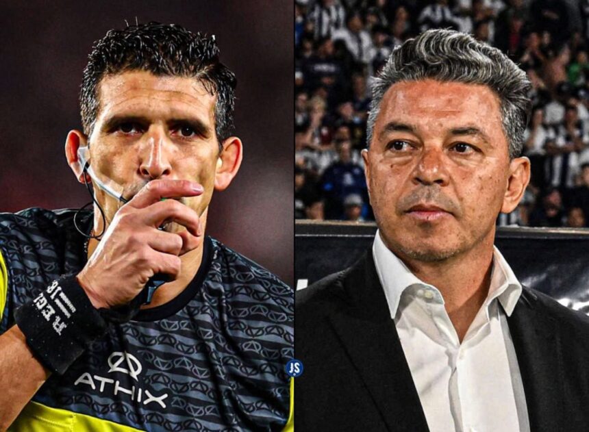 Marcelo Gallardo fue expulsado ante Argentinos Juniors y protagonizó luego un tenso intercambio con el árbitro Andrés Merlos en la zona de vestuarios. En River temen un informe severo que derive en una sanción prolongada.