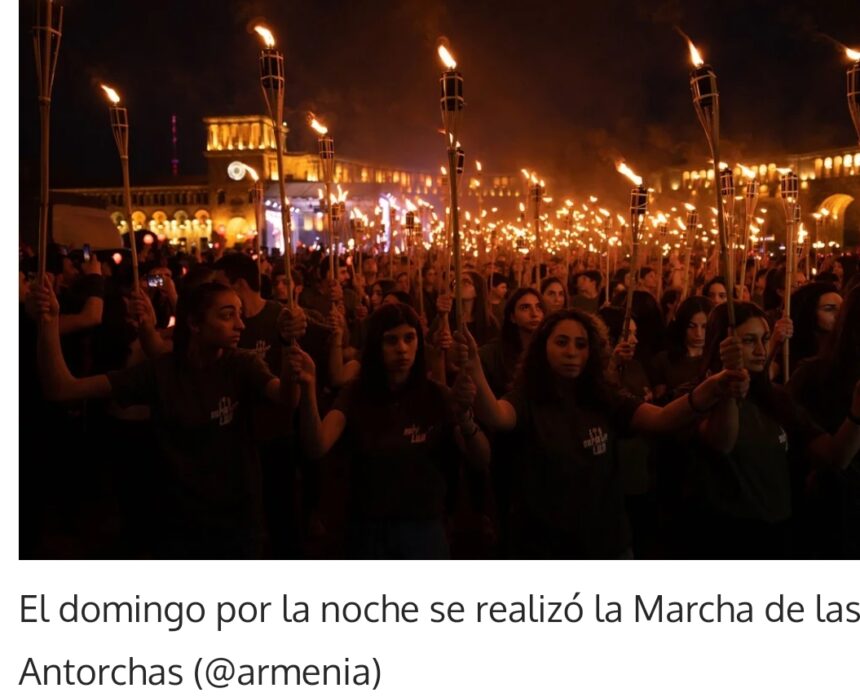 Pasadas las 20 el sol ya se había ido, la lluvia amenazante había durado lo que un suspiro, y la Plaza de la República estaba abarrotada de gente. Miles de personas, en su mayoría jóvenes y de mediana edad, se congregaron como todos los años para participar de la Marcha de las Antorchas la noche previa al 24 de abril, día en que se conmemora el 108 aniversario del genocidio armenio.