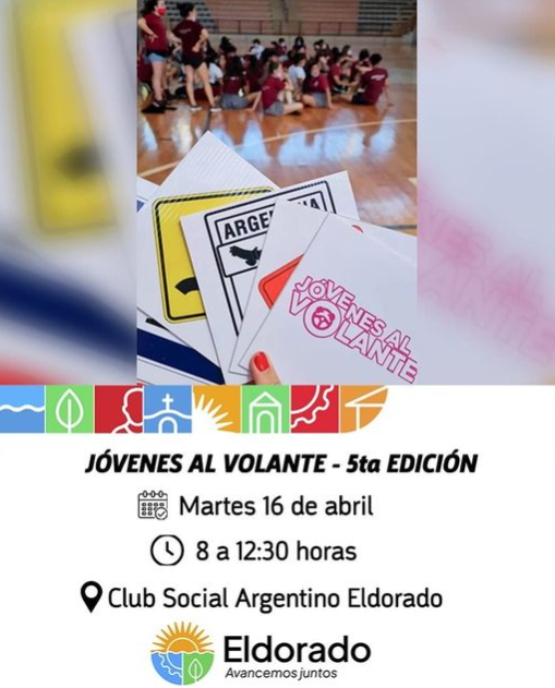 “Jóvenes al Volante” llega a la Ciudad de Eldorado por una solicitud municipal a través de la Dirección de la Juventud y es impulsada por el Ministerio de Desarrollo Social, la Mujer y la Juventud, a través de la Subsecretaría de la Juventud, el Ministerio de Educación, el Ministerio de Gobierno, la Subsecretaría de Seguridad y Justicia, Vialidad Provincial, la Escuela de Robótica, y la empresa Automisión.