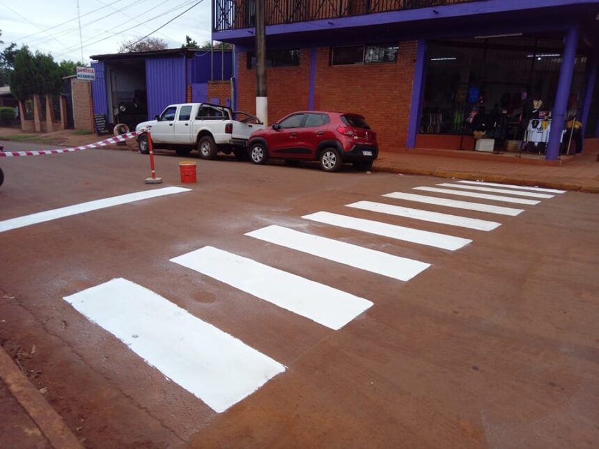 Por solicitud de los vecinos, la Dirección de Tránsito, junto al equipo de Mantenimiento Urbano, se realizó la demarcación sobre la calle Rivadavia, en su intersección con la Avenida San Martín, en el kilómetro 4.
