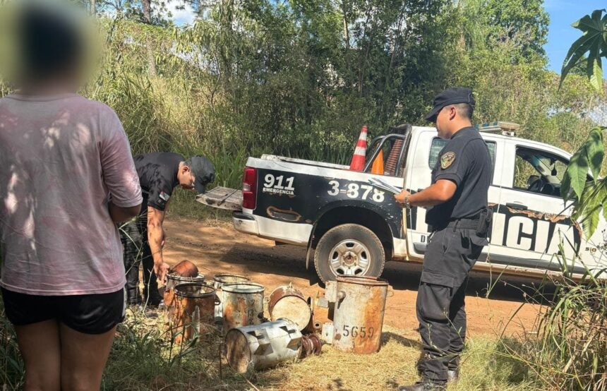 El hecho ocurrió hoy alrededor de las 16:20 horas, cuando personal de la Unidad Regional X se constituyó en un baldío cercano al predio de la usina de EMSA, donde vecinos habían observado a varias personas ocultando tachos metálicos entre la vegetación.