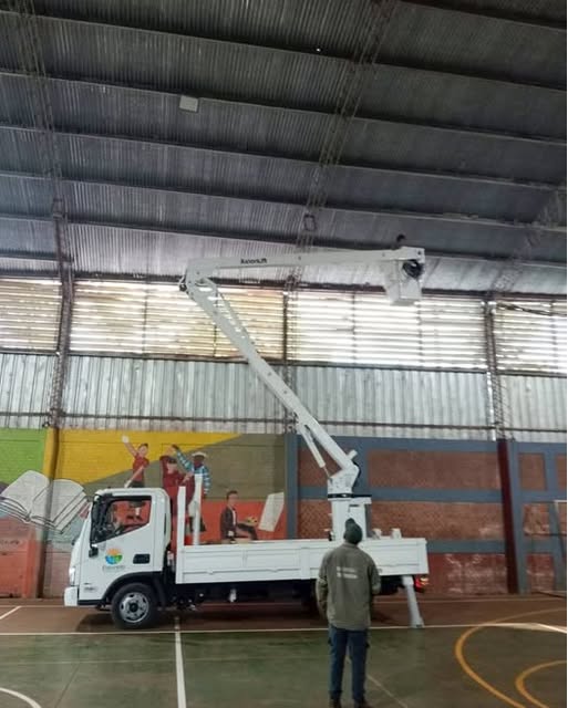 La Municipalidad de Eldorado realiza el recambio de luminarias en el Polideportivo Municipal «Héctor Hugo Ligorria» del kilómetro 9, para disfrutar de actividades deportivas todo el día.