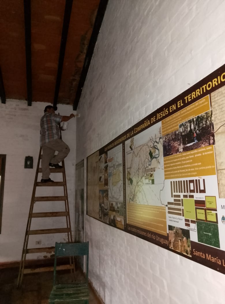 Por su parte, en el Conjunto Jesuítico de Nuestra Señora de Loreto, se avanzaron en la refacción del sistema de agua y de los sanitarios, comenzaron las reparaciones de los bancos, y se ha completado el desmalezamiento del predio y vía procesional, mejorando así el recorrido de quienes visitan este sitio.