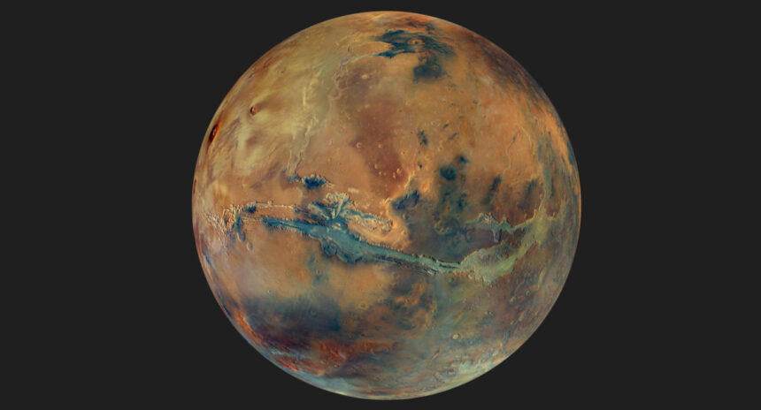 El planeta es conocido por su color rojizo causado por los altos niveles de hierro oxidado. Sin embargo, la nueva imagen revela grandes partes del planeta que parecen más bien oscuras y de tonos azulados, debido a las arenas basálticas de origen volcánico, de color negro grisáceo, que forman extensas capas de arena oscura.