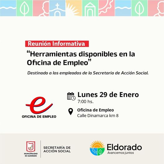 Informacion generalLocales Reunión Informativa «Herramientas disponibles en la Oficina de Empleo» Última actualización: 2024/01/24 at 6:22 AM Dia uno Publicada 24 enero, 2024 compartir compartir Destinado a los empleados de la Secretaria de Acción Social. Lunes 29 de Enero 7:00 hs. Oficina de Empleo – Calle Dinamarca km 8 TAGGED: General Dia uno 24 enero, 2024 Share this Article Facebook Twitter Email Copiar link Impresión Entradas recientes Clima para hoy, Martes 21 de Octubre Horóscopo de hoy, Martes 21 de Octubre Pablo Laurta llegó a Córdoba para ser indagado por el doble femicidio: “Estoy en paz” Búsqueda desesperada y misterio: ¿qué se sabe sobre la pareja de jubilados desaparecida en Chubut? Avance prometedor: crean óvulos potencialmente fértiles a partir de células de piel humana