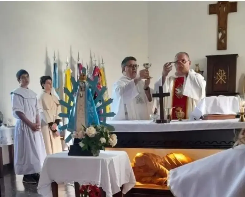 La Santa Misa fue presidida por el presbítero Armando Espinoza, concelebrada por el párroco Marcelo Aguirre, el vicario Diego Pezuk y los diáconos de ambas parroquias de Jardín América.