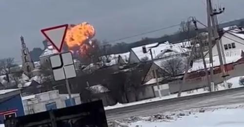 Un video publicado en la aplicación de mensajería Telegram por Baza, un canal vinculado a los servicios de seguridad rusos, mostró un avión de gran tamaño que cayó al suelo y explotó en una vasta bola de fuego.
