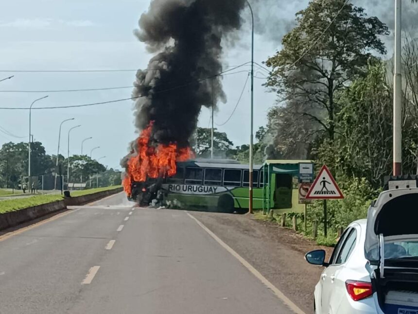Un colectivo de la empresa Río Uruguay se prendió fuego sobre la Ruta Nacional 12, en el acceso a Puerto Iguazú.