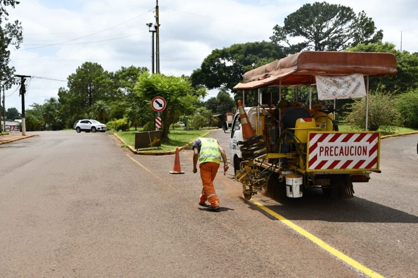 En un trabajo en conjunto entre la Dirección Provincial de Vialidad y la Municipalidad de Eldorado se está llevando adelante la demarcación de toda la avenida principal.