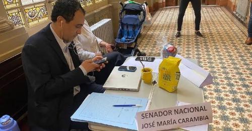 La extraña situación se dio en medio de la incertidumbre de las distintas carteras del Ejecutivo nacional, cuyas irregularidades en la transición se traslado a la Cámara Alta, presidida por Victoria Villarruel. Sin embargo, ambos senadores se lo tomaron con humor: “Estamos acá en el despacho, en la oficina. Todavía no nos asignaron ninguna, por eso tuvimos que armar una acá improvisada en el pasillo», sostuvo Carambia -ex intendente de la localidad de Las Heras- en un video publicado en sus redes sociales.
