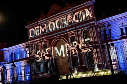 La Casa Rosada celebra el 39° aniversario de la democracia con un videomapping