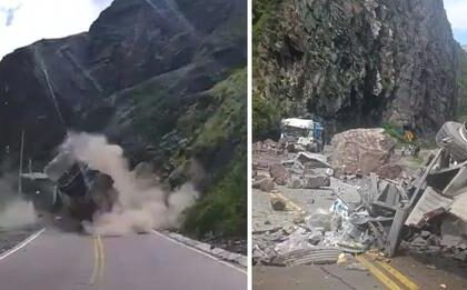 Perú | Un impresionante derrumbe de piedras aplastó 2 camiones