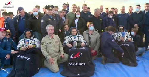 El trío aterrizó en una remota zona de Kazajstán, a bordo de una cápsula Soyuz que fue enviada de reemplazo después de que la nave original fuera alcanzada por basura espacial y perdiera todo su refrigerante mientras estaba acoplada a la Estación Espacial Internacional.La tripulación pasó más de un año en la Estación Espacial Internacional.