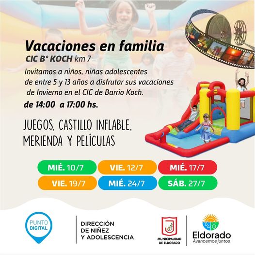 Invitamos a niños, niñas y adolescentes de entre 5 y 13 años a disfrutar sus Vacaciones de Invierno en el CIC de Barrio Koch.
