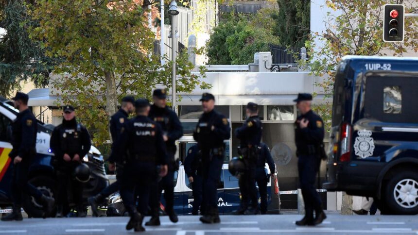 Este viernes, efectivos de la Policía Nacional analizaron un nuevo paquete sospechoso recibido en la embajada de Ucrania en Madrid.