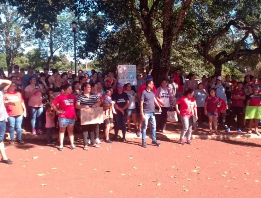 La marcha se realizó hasta la sede del edificio municipal, ya que la distribución de agua potable está en manos del municipio, exigiendo respuestas al intendente Hugo Andino.
